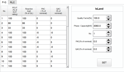 带有-62116选项的ESA系列电源用于防孤岛测试时,集成了电网模拟电源和交流电子RLC负载的功能。在防孤岛测试中, ESA-62116支持两种设置模式,模式一:设定三相PAC、QAC、待测物额定功率PEUT和品质因数QL;模式二:设定三相R、 L、C的具体数值。