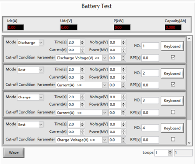 BSL系列提供电池测试软件,可以用于动力蓄电池组的特性测试,如:动力蓄电池组的充放电性能、温升特性、 循环寿命等,通过 GUI 软件可配置不同的充放电策略,同时实时监控测试的电气参数。