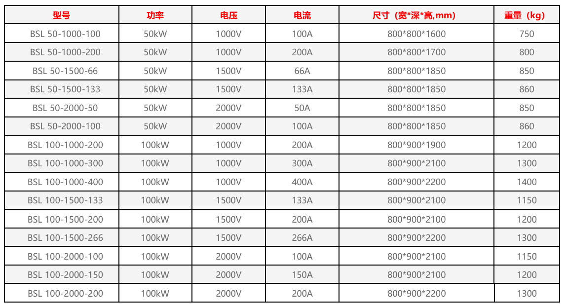 输出功率50KW/100KW/150KW/200KW/250KW/300KW。